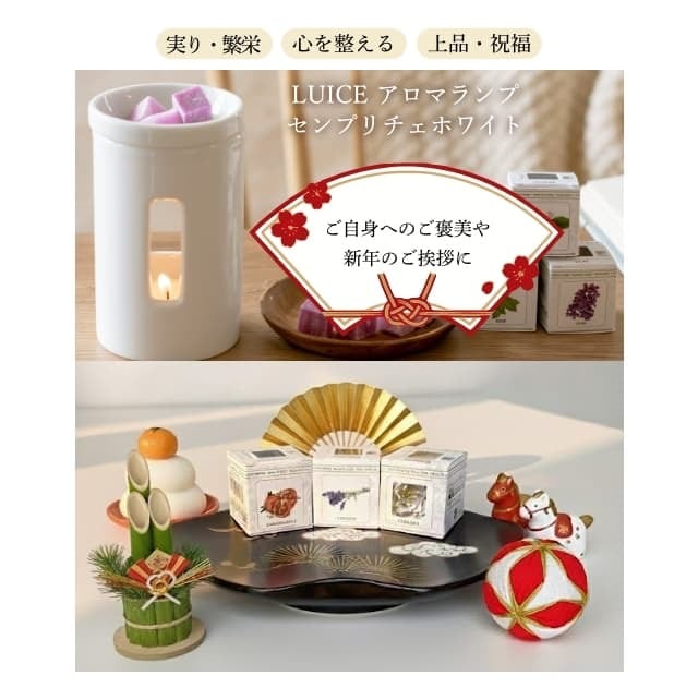 迎春 開運アロマ3種セット♪一式揃っています♪【ルーチェ アロマランプ センプリチェ ホワイト ザクロ ラベンダー ガーデニア ルーチェキャンドル(4個入)】